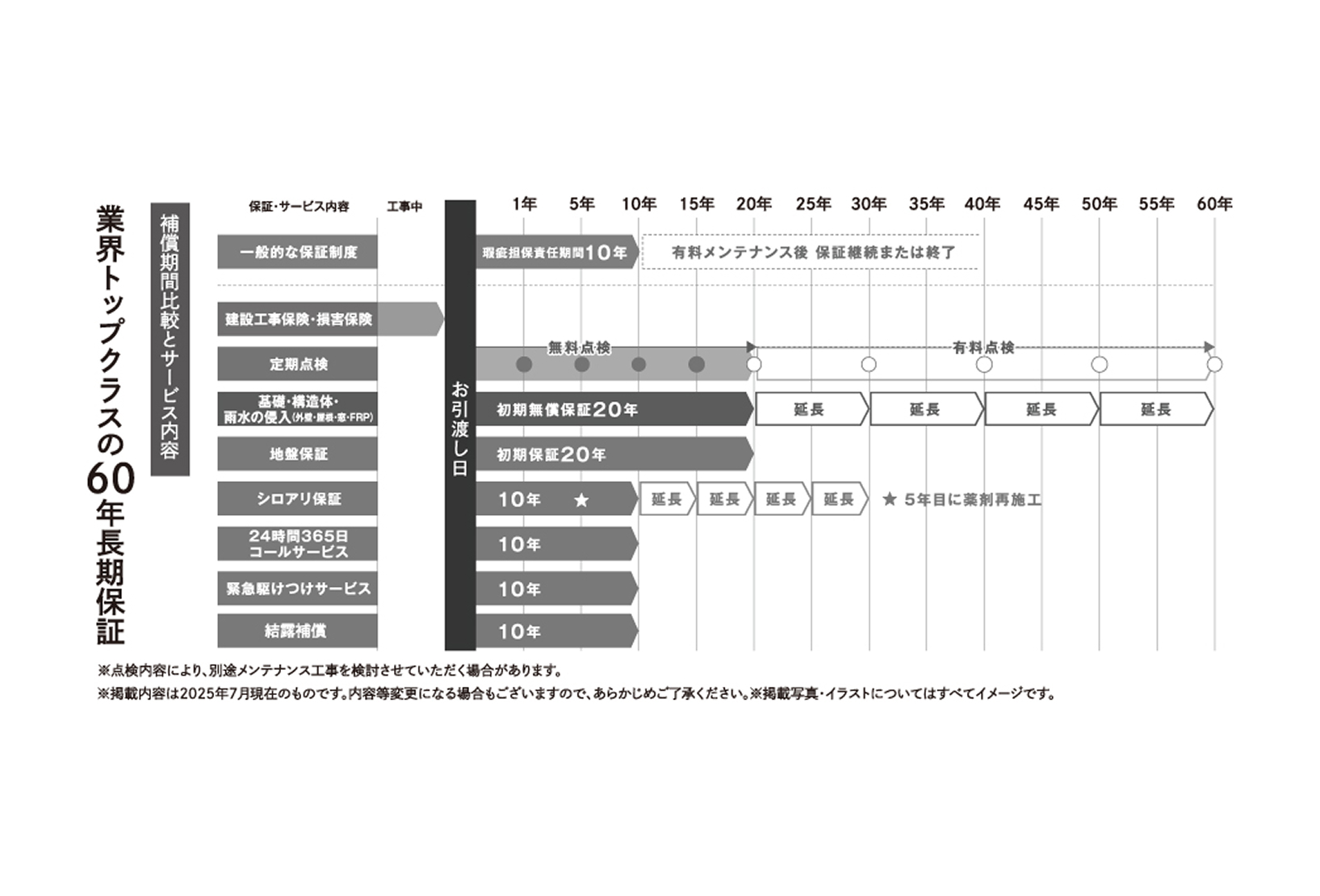 最長60年の長期保証と定期点検