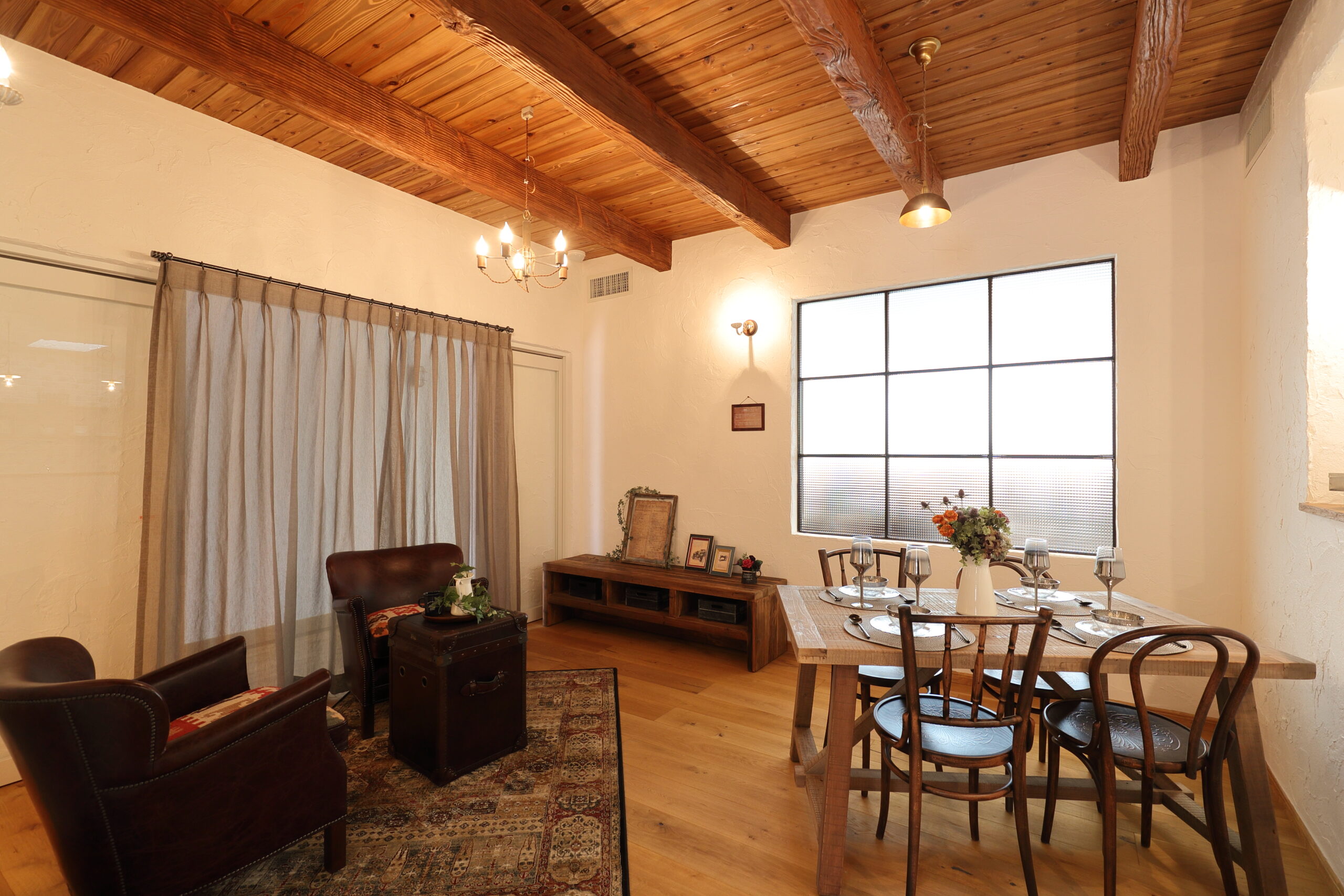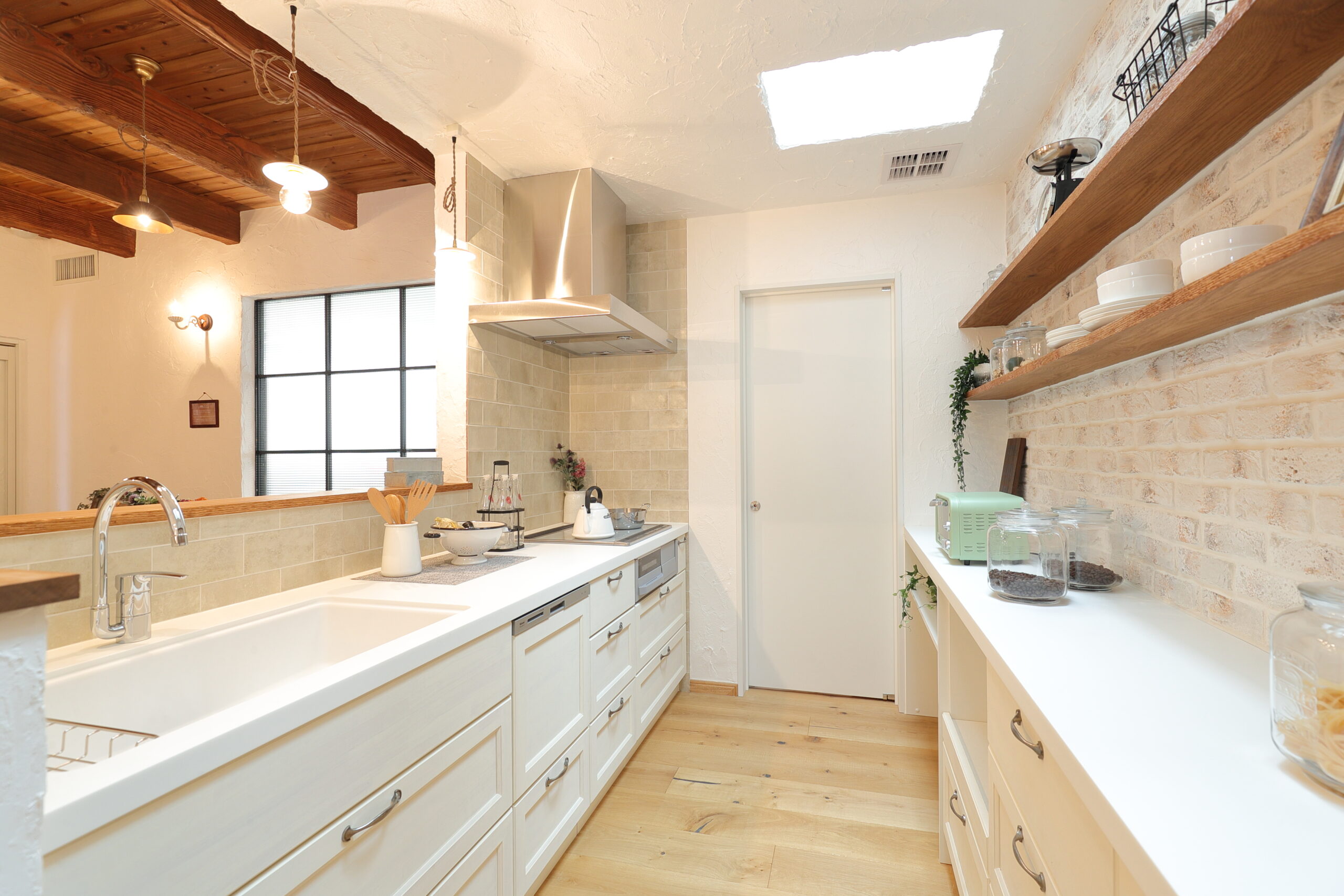 漆喰や無垢材などの自然素材を使ったお家と、