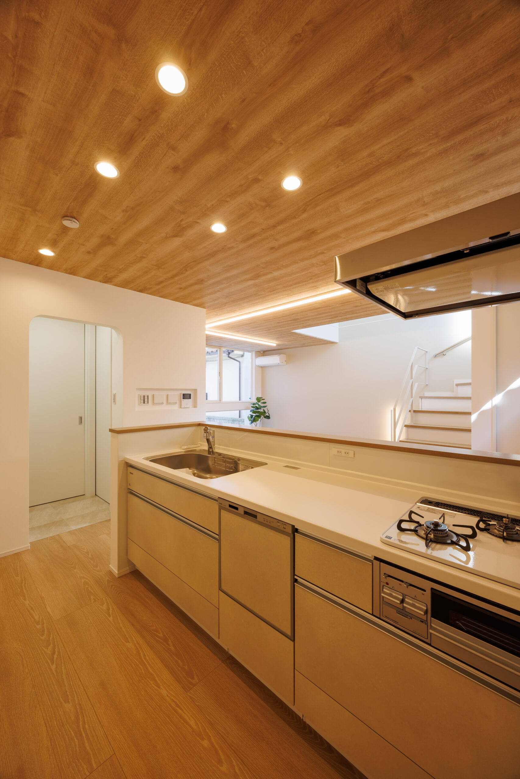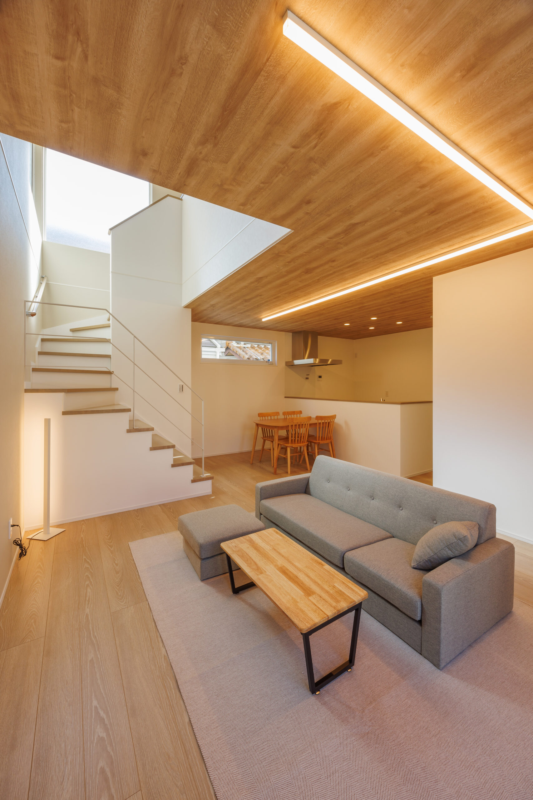 リビング部分のライン照明が空間にアクセントを与えています。